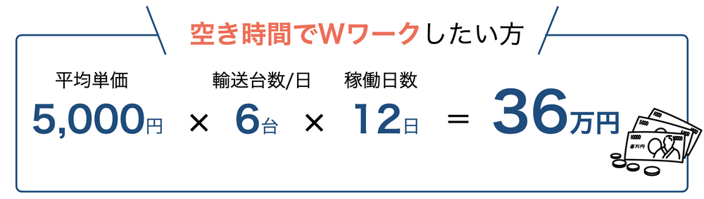 副業としてもオススメ、詳しくは次の記事をご覧ください→副業にぴったりのドライバー求人。空いた時間に副業ドライバーとして効率よく稼ぐ!